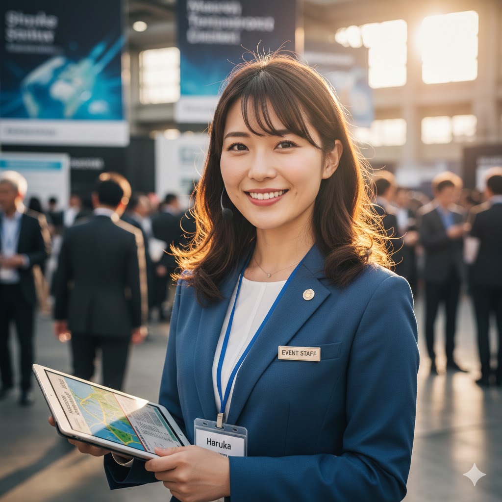 展示会やイベントに行くと、キラキラした笑顔で来場者に対応してくれるコンパニオンの方々がいますよね。